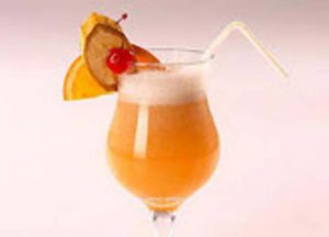 Метод приготовления напитка Коктейль Мистика персика: Все соки и порезанные плоды взбалтываете в блендере и доливаете в бокал харикейн.